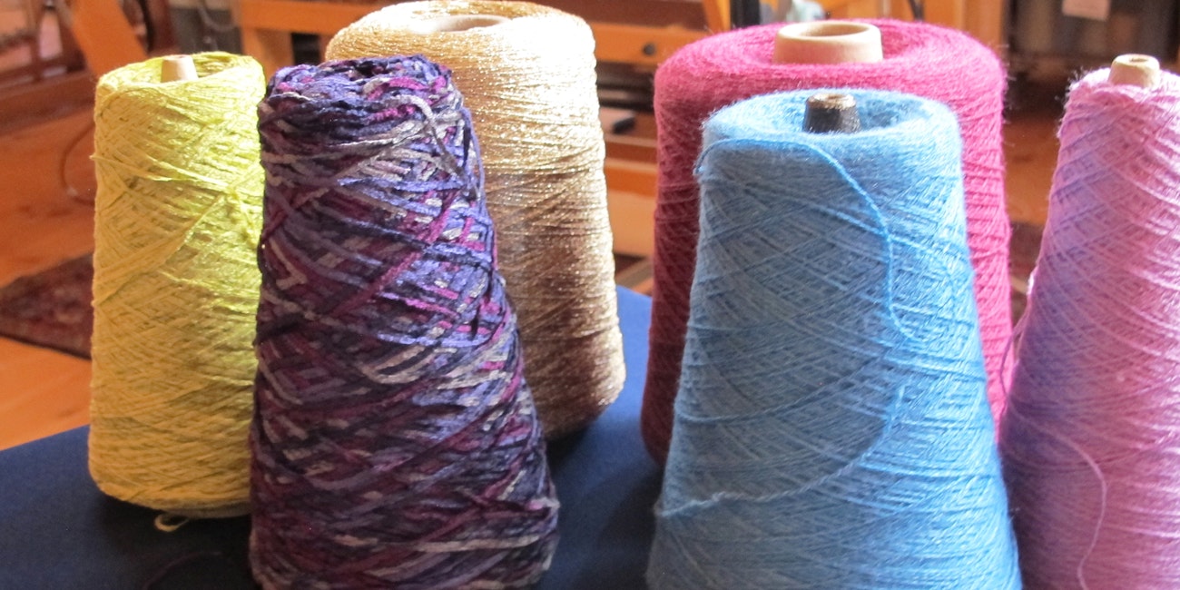 Some of the yarns Janney talks about in her discussion of yarn choices for DDW, including silk/wool and chenilles