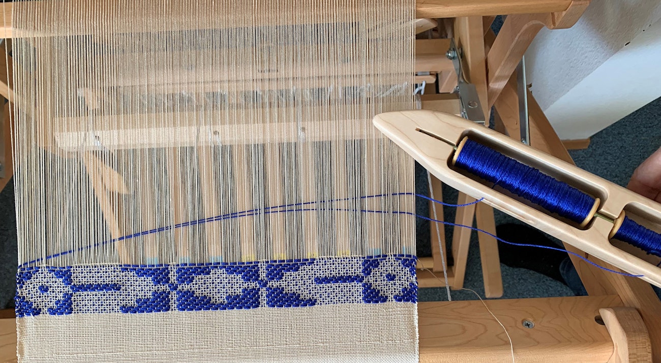 To double the yarn in the weft, there are two options: winding two threads onto the bobbin, or making two picks in the same shed. Both have drawbacks. The two yarns will often unwind from the bobbin unevenly, and weaving two picks takes twice as long as weaving one.
