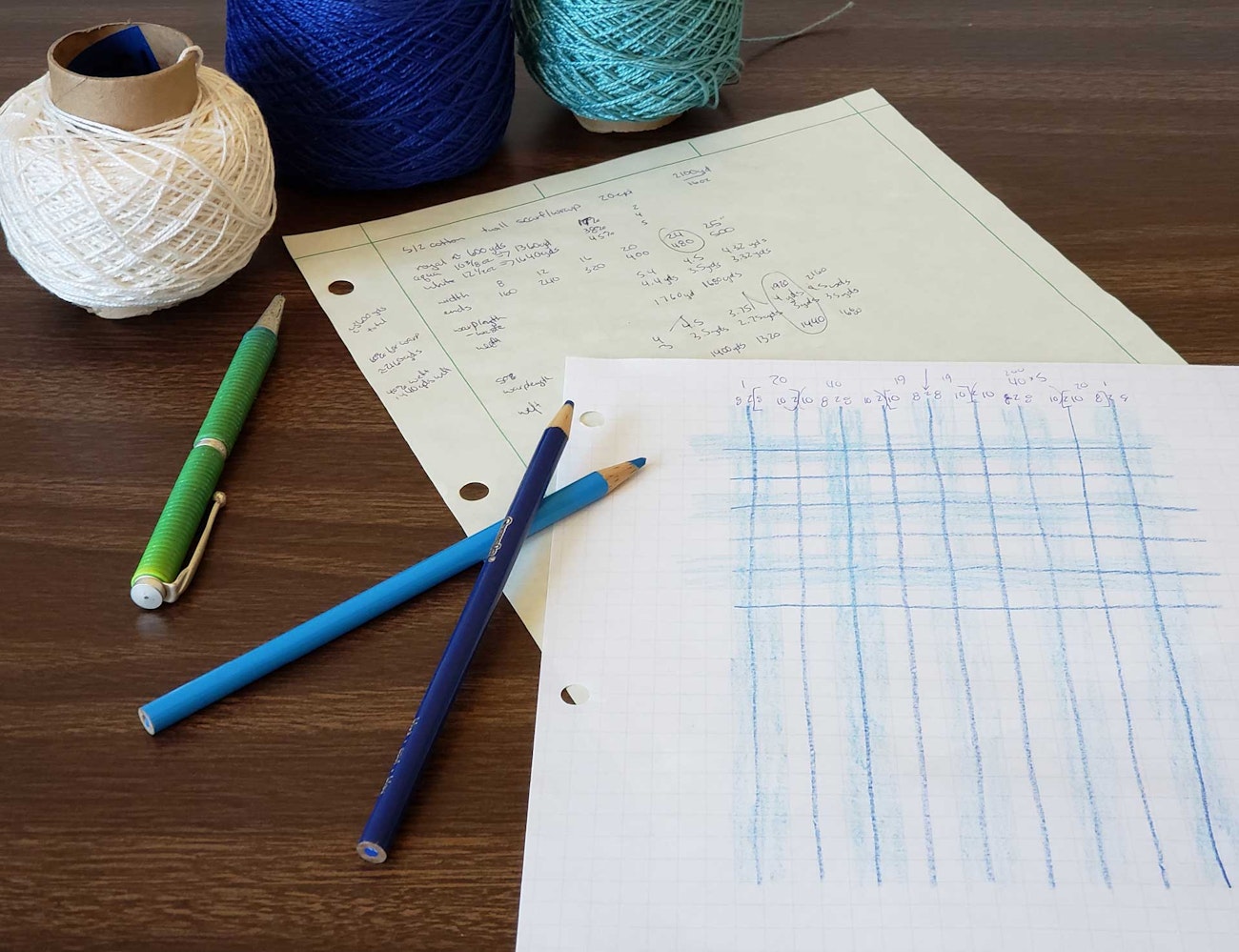 I chose an appropriate twill sett and guessed my picks per inch. I estimated the yardage on each cone, did some back-of-the-envelope calculations to come up with the warp and weft usage, and sketched out plaid variations with the proper ratios of each color. The yarn hit the loom, and I wove an attractive length of fabric.