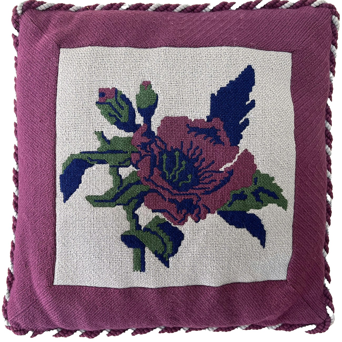 David wasn’t afraid of doing something difficult on shaft looms, however. The pillow below is woven in finnweave pick-up with four layers of plain weave (white, green, blue, purple) on eight shafts. Complete instructions appear in the 1983 Issue 4 of Prairie Wool Companion. David called it the Snark—it was hard to weave: You had to place each layer in every pick: if purple needed to be on top in a certain design row but was on the bottom previously, it had to be brought up one layer/one pick-up at a time. I decided never to try it.