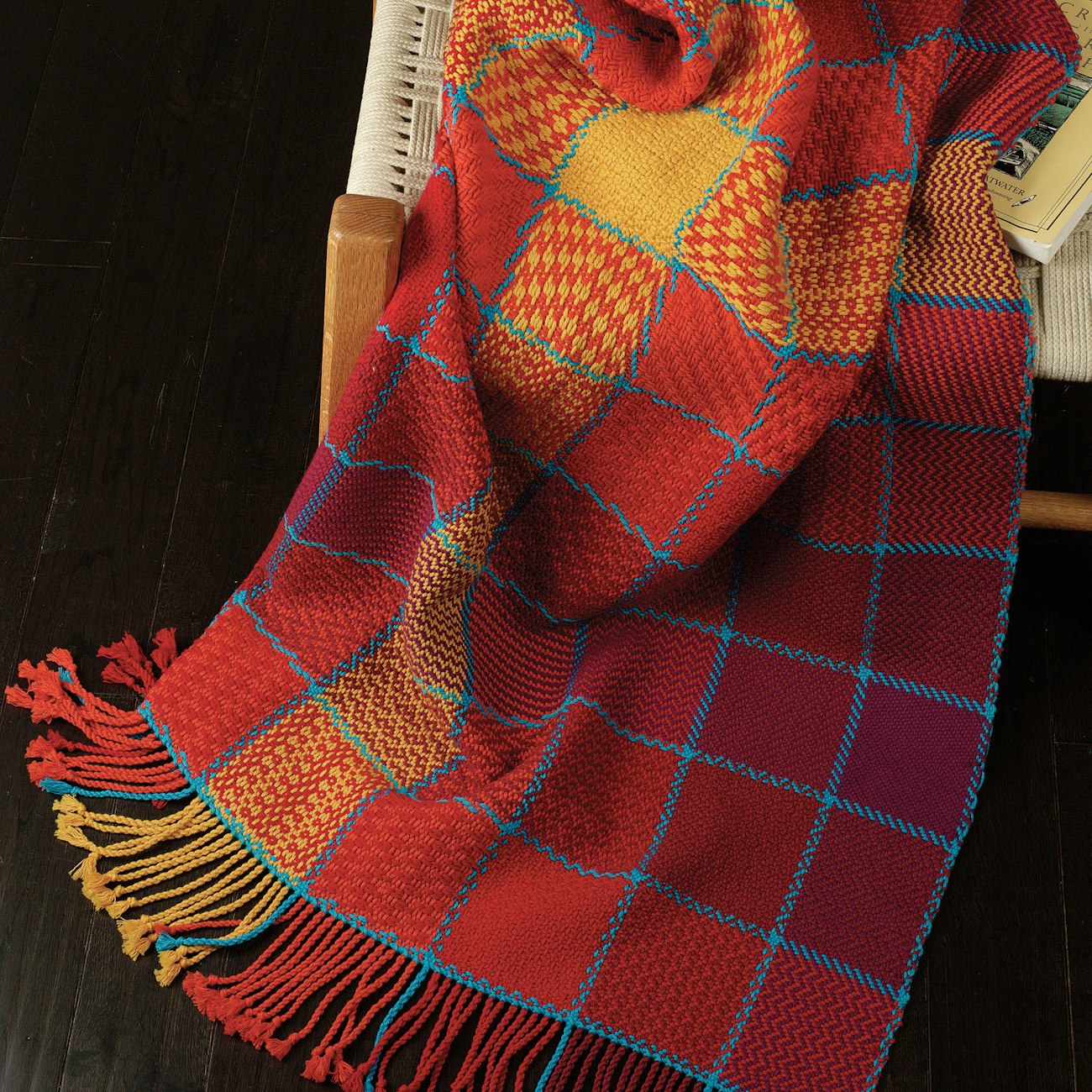 If you want to combine your weaving pleasure with a study project, Robyn Spady's twill gamp throw invites you to explore color and pattern as you create a lightweight throw for naps in your weaving studio, dreaming sweet dreams of weaving projects to come. Robin used a cotton/wool blend and 4-shaft twill drafts for the gamp.