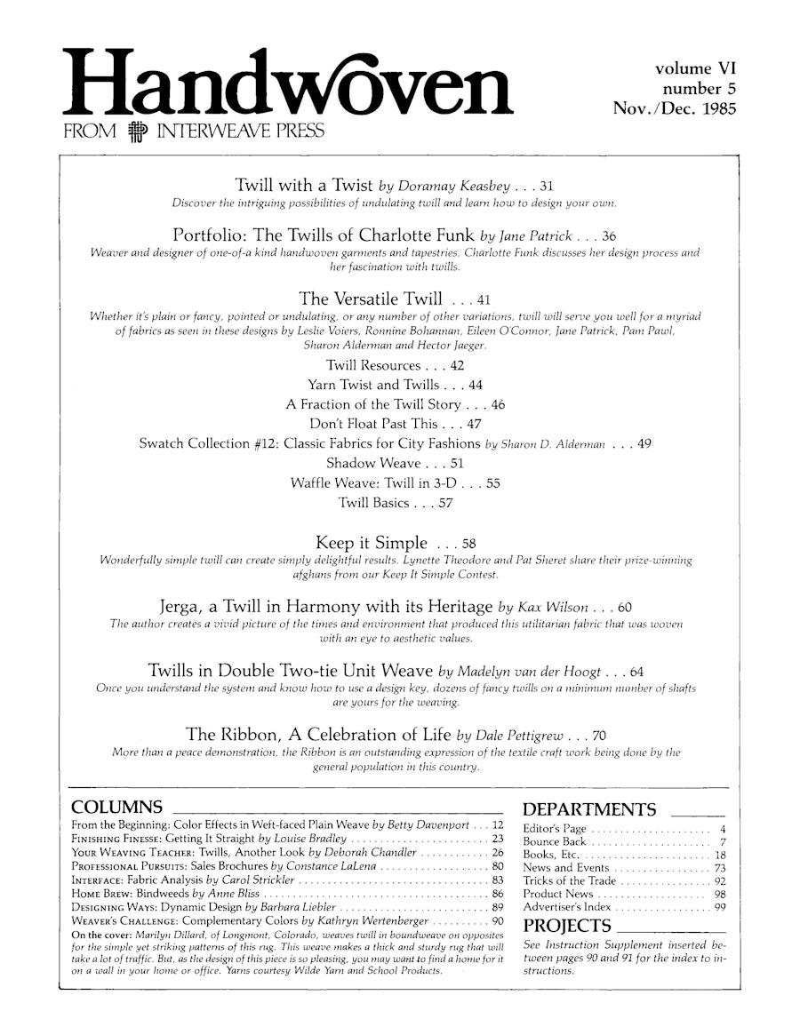 Discover the intriguing possibilities of twill with Handwoven November/December 1985.