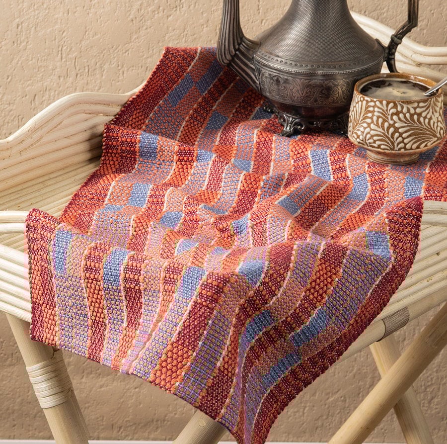 LoginThis runner, from the November/December 2022 issue of Handwoven, squeezes four pattern blocks out of summer and winter in a four-shaft design woven in cotton and cottolin.