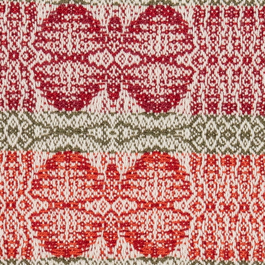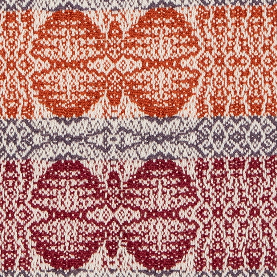 Weft: 8/2 cotton (3,360 yd/lb; Maurice Brassard), #1732 Plum, 238 yd; #8265 Orange brulé and #1316 Rouille, 191 yd each; #985 Brique, 134 yd; #1244 Olive, 200 yd; #5213 Cayenne, 115 yd; #4270 Brick, 58 yd; #963 Royal, 115 yd; #4272 Bleu, 154 yd; #5120 Mauve pâle, 39 yd. 8/2 organic cotton, #5001 Khaki, 200 yd.Dimensions
