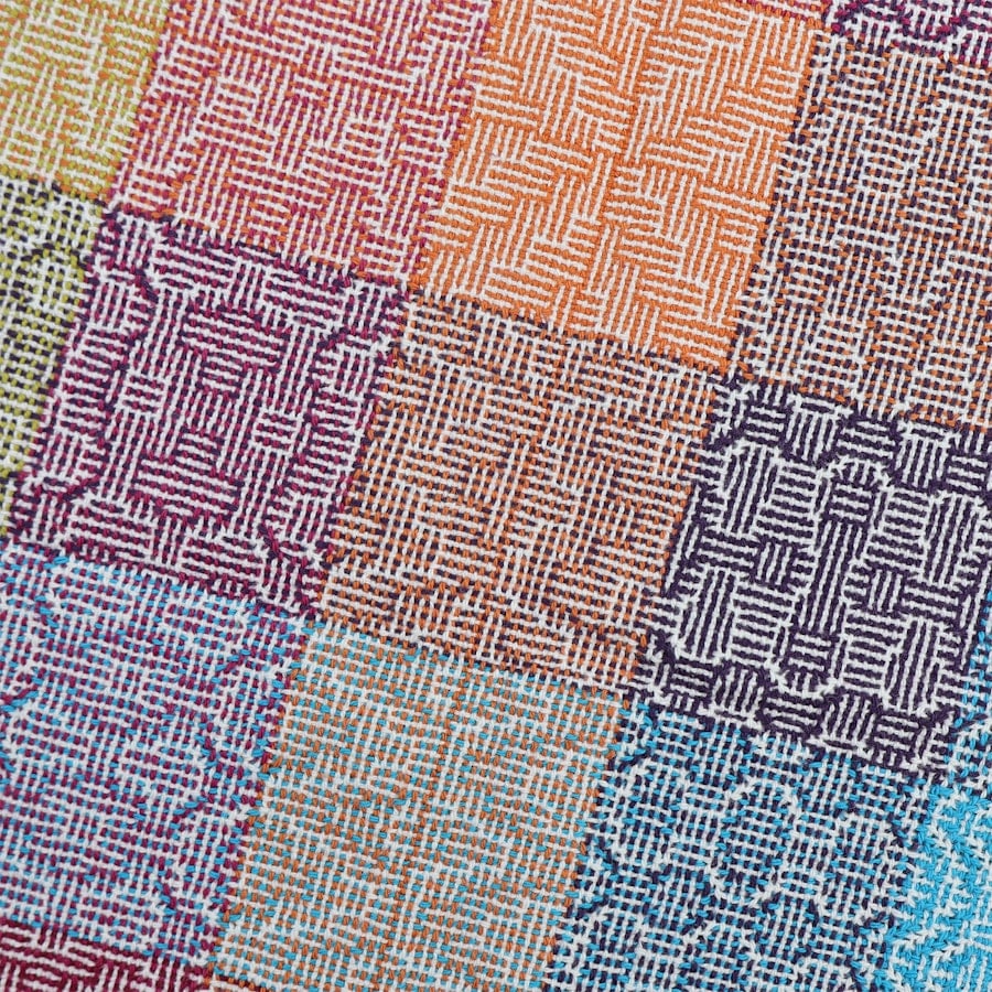 LoginShadow weave is a great structure for towels, creating relatively large patterns that magically seem to appear simply by alternating dark and light threads. Warps and wefts mostly interlace in an over-one-under-one manner, so the sett is the same as for plain weave, creating a strong towel that will easily reach inside a narrow wineglass.