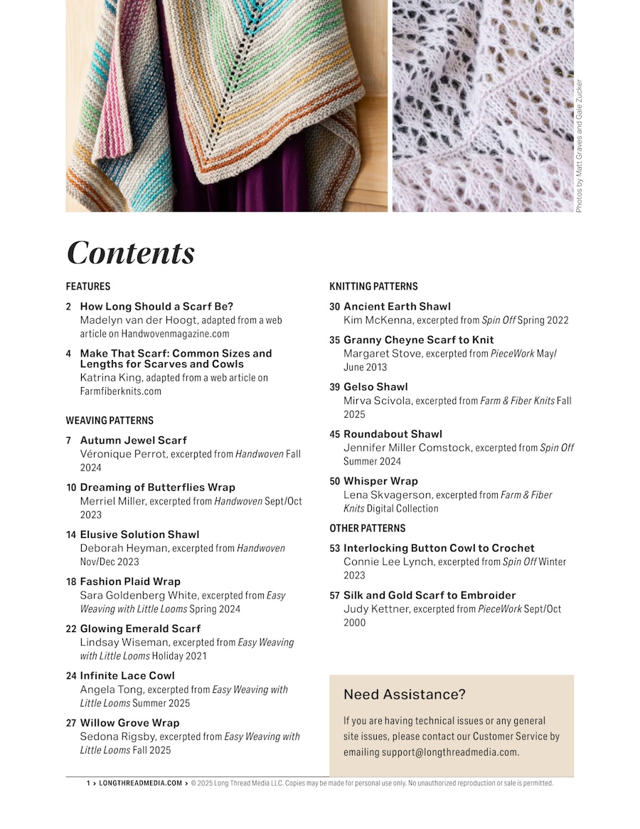 Featuring selections from all your favorite brands, including Handwoven, Easy Weaving with Little Looms, Farm & Fiber Knits, Spin Off, and PieceWork, this collection is truly a celebration of scarves and shawls.