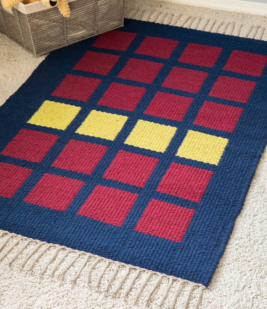 LoginThis rug project from Summer 2024 uses taqueté to create colored blocks.
