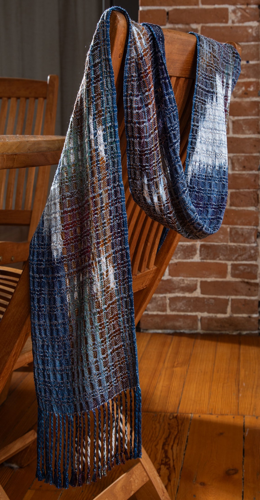 LoginThis scarf project from Winter 2024 highlights an ice-dyed warp with ikat sections, and shibori.
