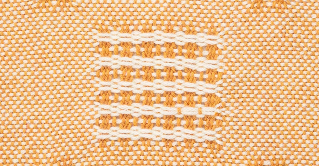 Setts: 10 epi; 12 ppi (10 of plain-weave background, 2 of doubled outline pick).