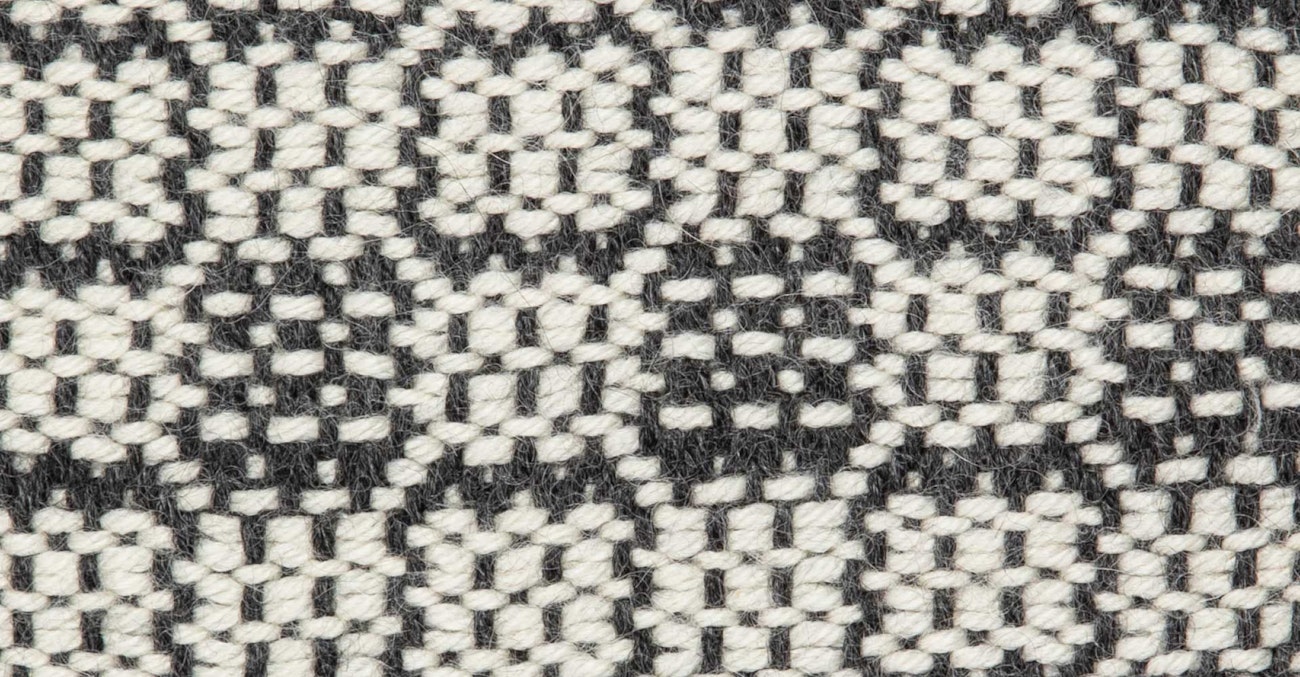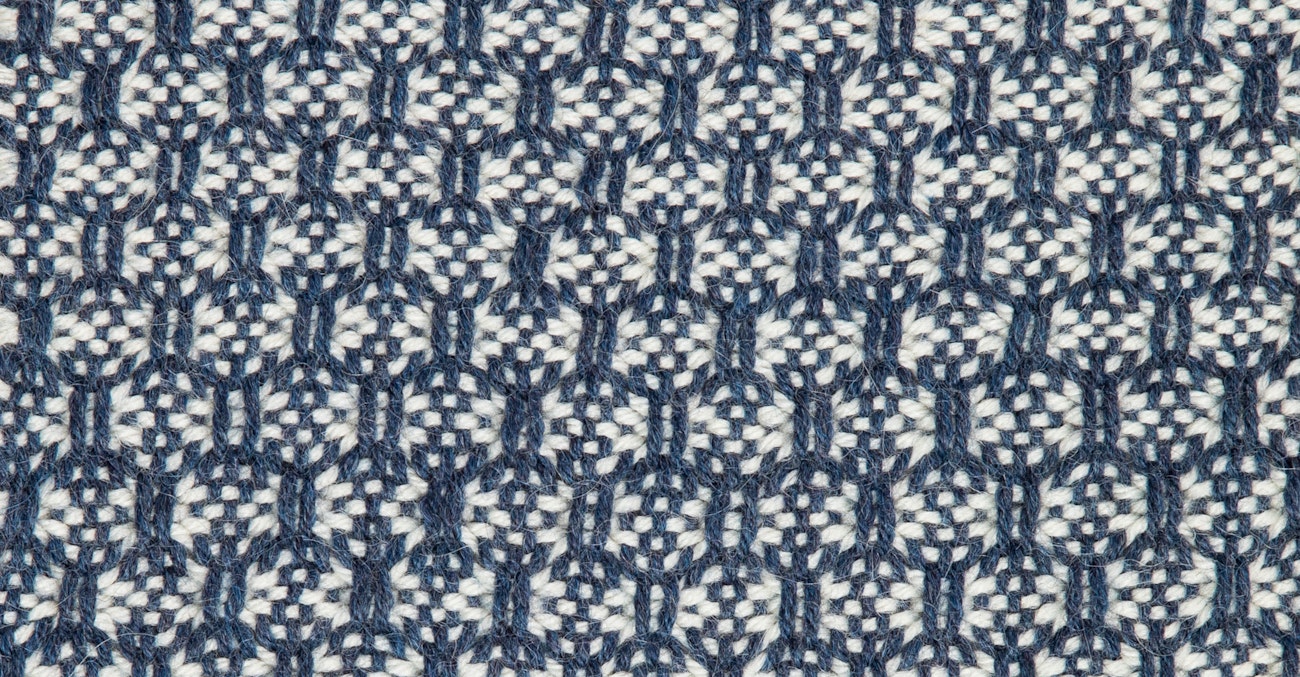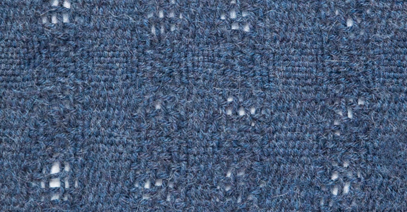 As an animal fiber, Ode has enough “grabbiness” to keep lace floats secure and less vulnerable to snagging and pulling. The floats not only stand out visually but create a beautiful, cushioned texture against a plain-weave background. A lace motif like the one shown here would be stunning as a reversible, allover design or as a minimal border for a scarf, shawl, or throw.