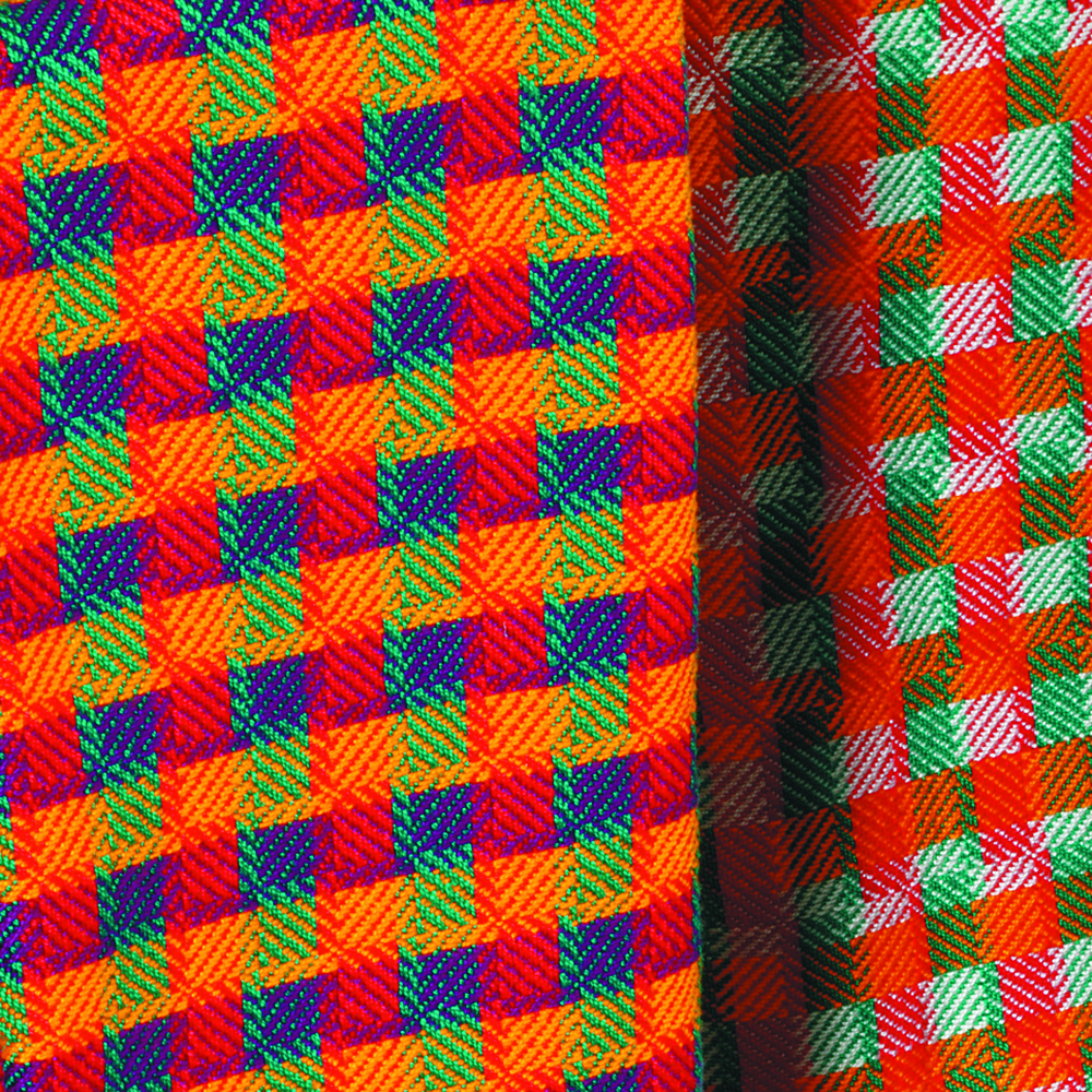 • Blocks of warp-predominant and weft-predominant twill sitting side by side.