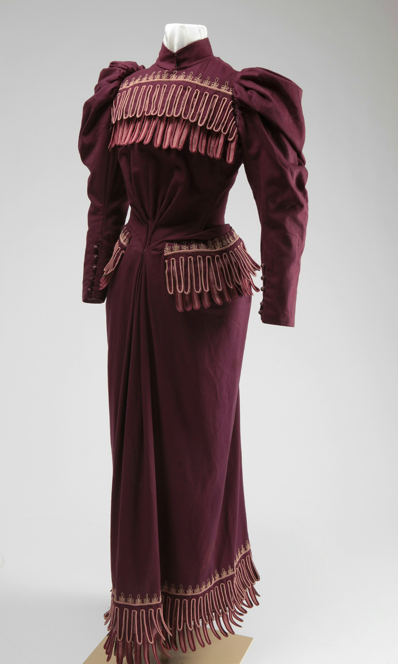 I'm pretty sure my friends weren't wearing dresses as fancy as this deep purple worsted wool dress circa 1892. Courtesy of the Missouri Historical Society, St. Louis