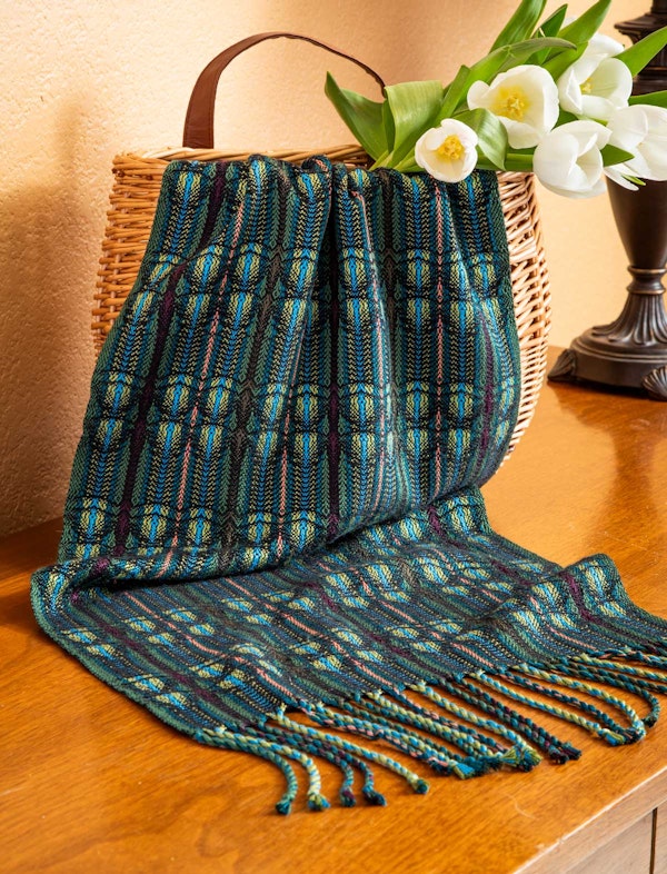 Get the full threading and treadling draft for the Blue Morpho Runner by Sydney Sogol, as well as a rundown of treadling blocks that you can use to improvise your own version.