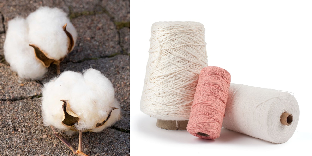 Cotton bolls as grown (left) and after processing and spinning (right). Photos by Matt Graves (left) and Joe Coca (right)